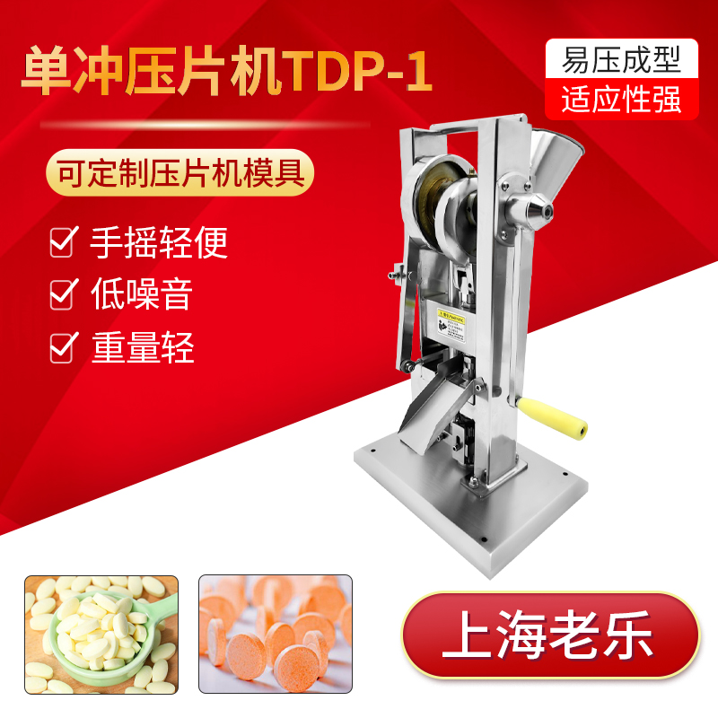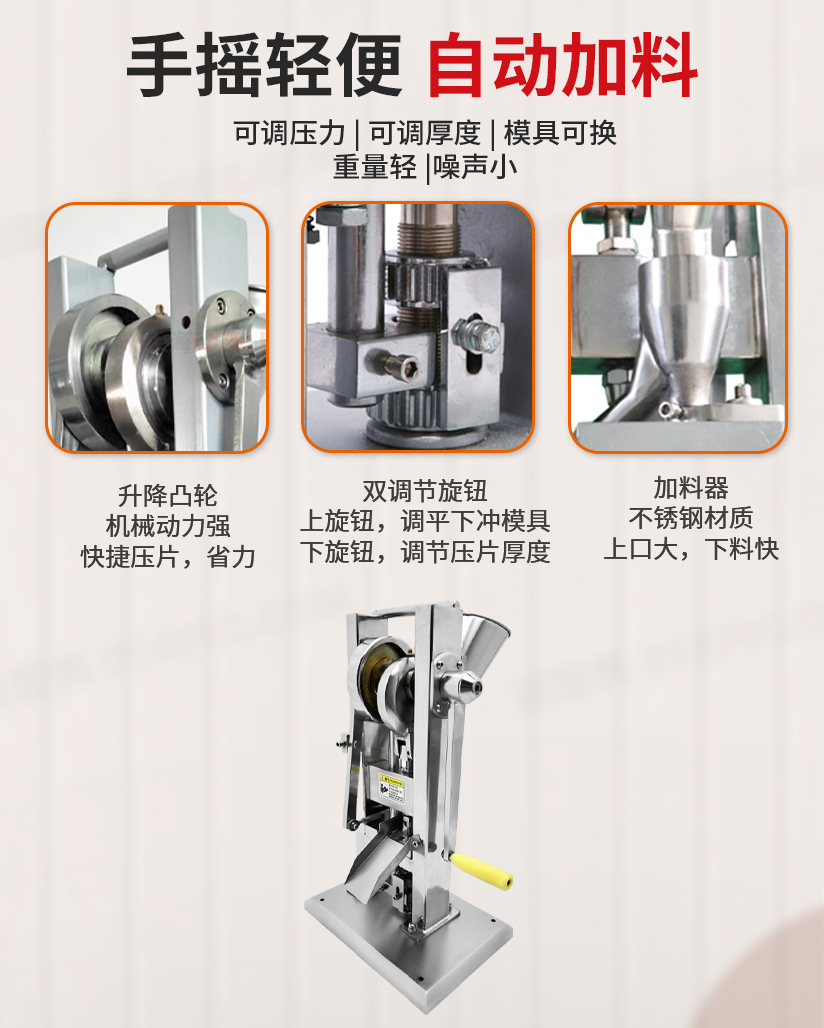 2、纯手摇、手动小型单冲压片机,机器轻便易移动