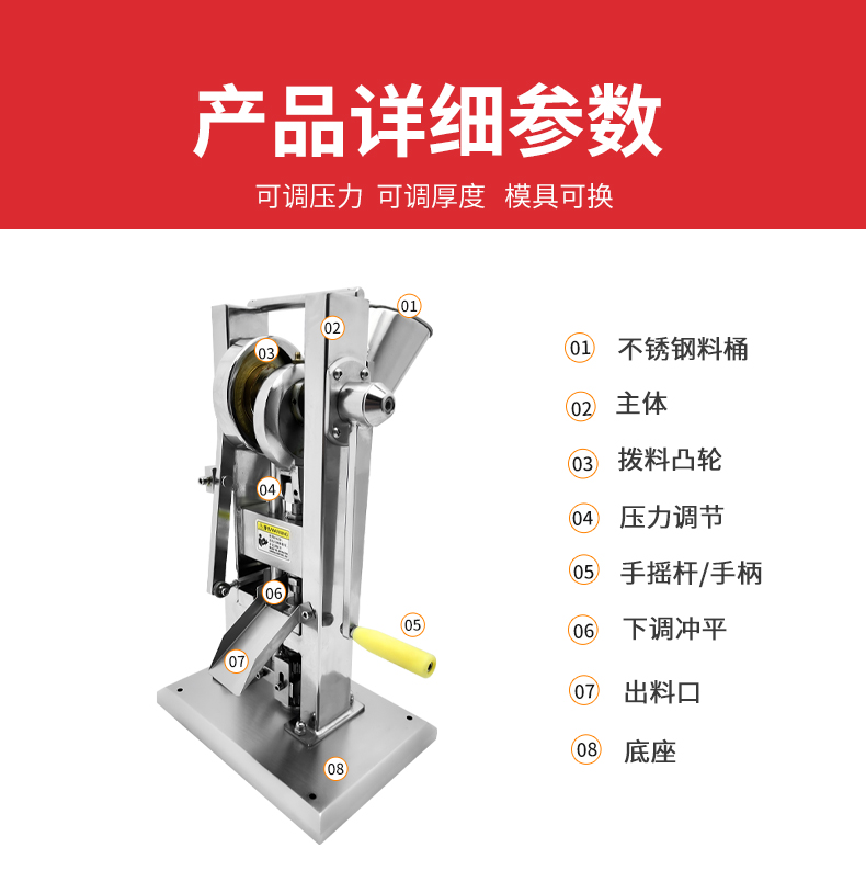 可调压片厚度:2-6mm(厚度根据实际需要调节)
