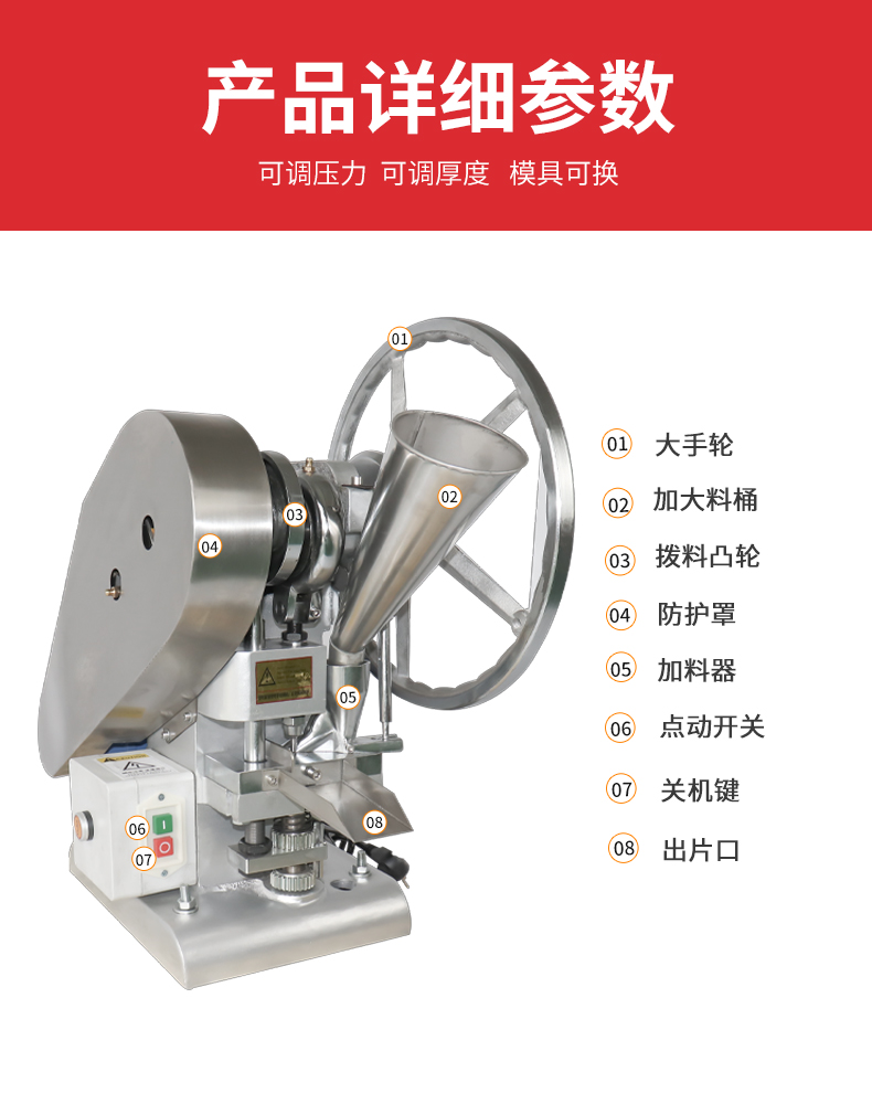可调压片厚度:2-6mm(厚度根据实际需要调节)