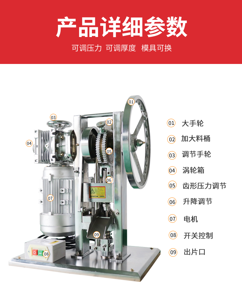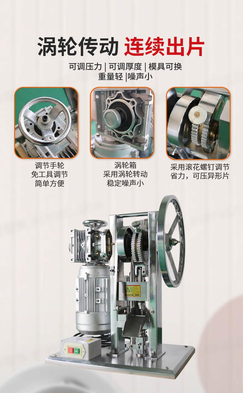 单冲压片机颗粒粉末压片中药材豆浆粉杂粮家用自动压片机烤漆款