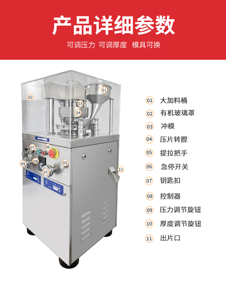 可调片剂厚度(毫米) | 6 | 6 | 6 | 6 | 6 |