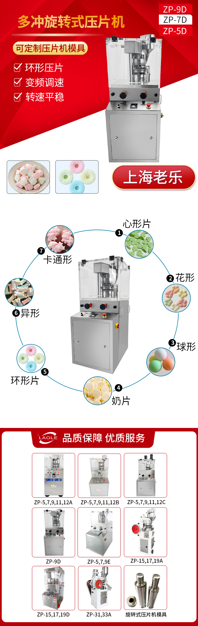 ZP-5/7/9/11/12A保健品奶片糖果片实验室中药片粉末颗粒压片机