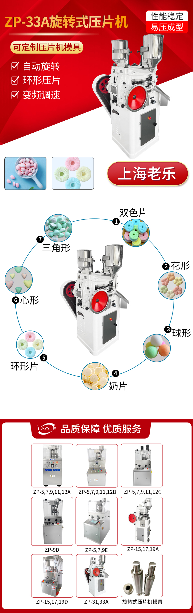 ZP-33A多冲旋转式糖果双压消毒片压片机粉末颗粒中草药泡腾片压片