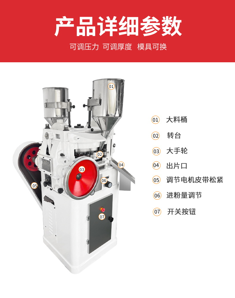 5/7/9冲旋转式糖果压片机触摸屏中药材泡腾片奶片钙片药片压片