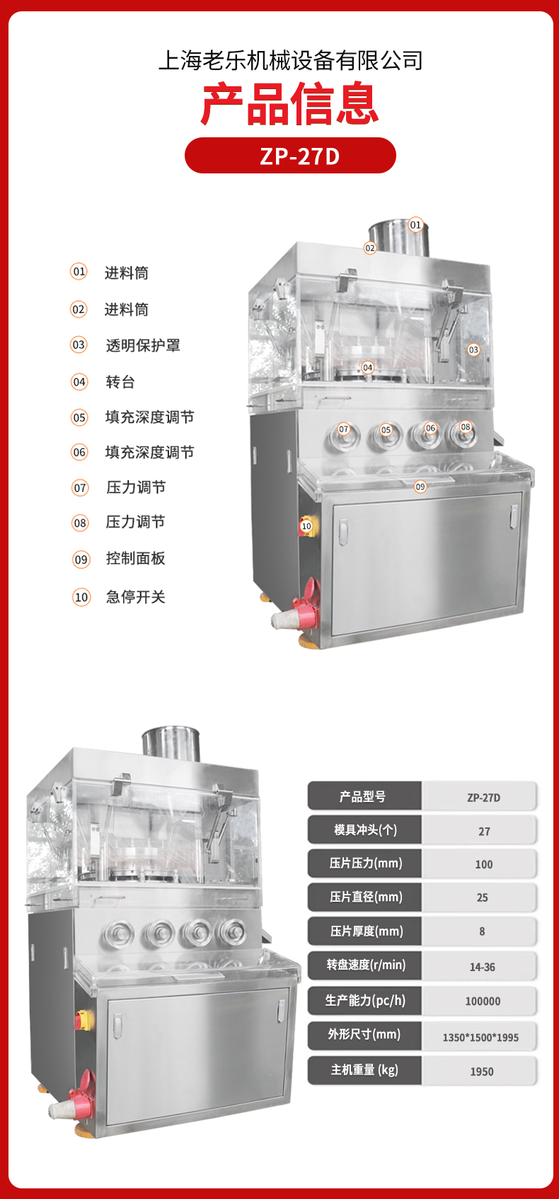 可调压片压力:80-120KN(可调,升级到7.5KW)