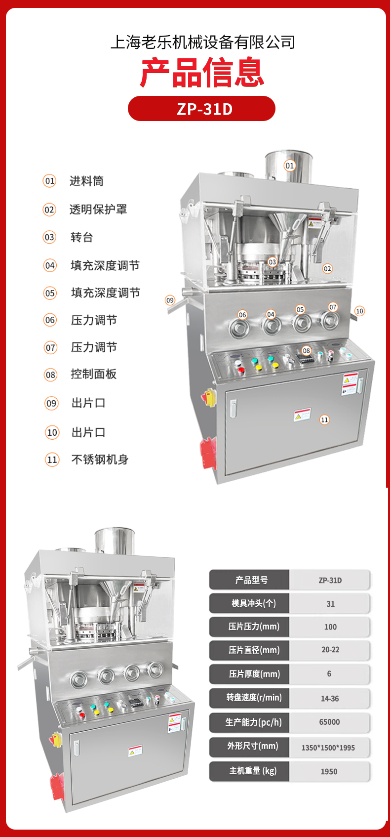 双层片剂压制,外包不锈钢,整体设计美观简洁,运行平稳,噪音小