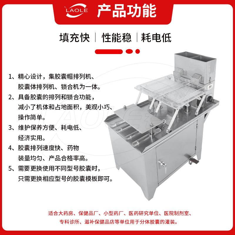 集胶囊帽排列机、胶囊体排列机、锁合机为一体