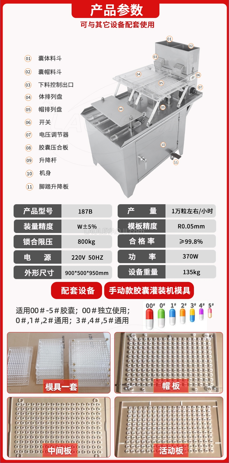 可更换胶囊尺寸的模具,适应不同的胶囊大小