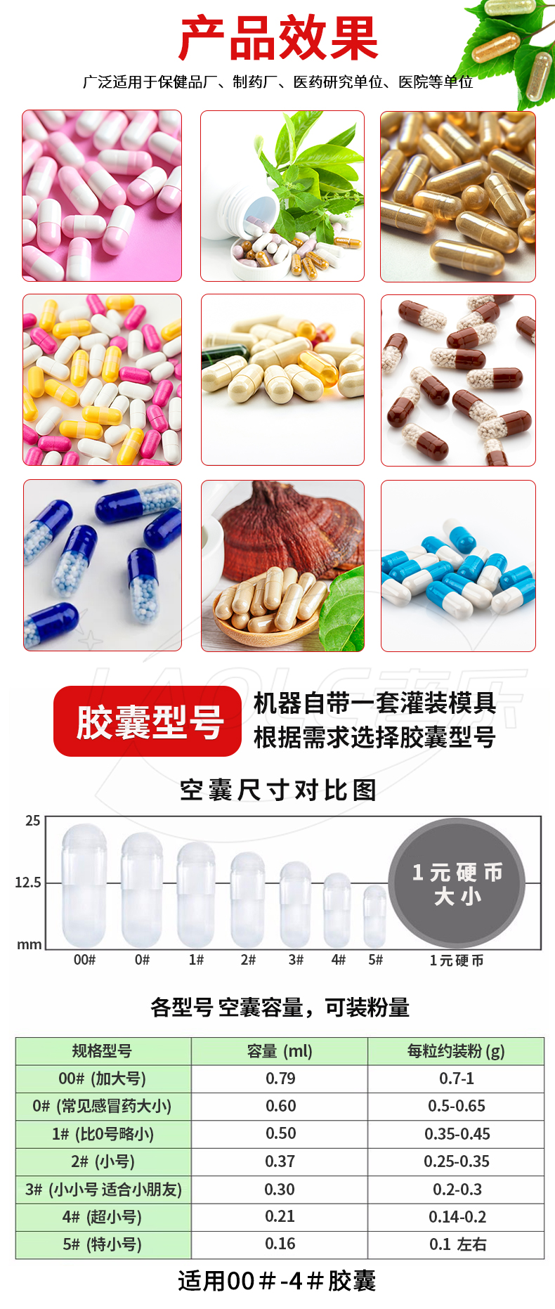 多功能胶囊灌装机粉末颗粒充填机空胶囊踢废