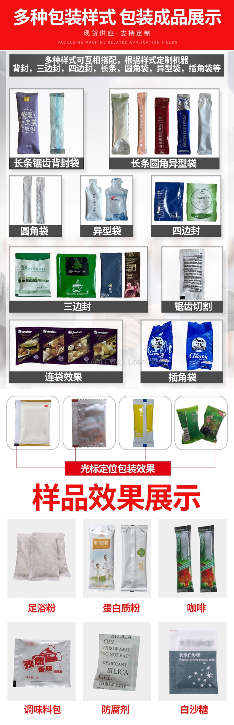制袋尺寸:可调长度50-180mm,可用包材宽度50-240mm ,三边封,把包材对折是产品宽度