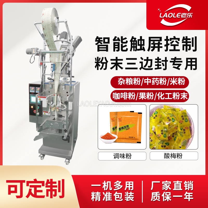 制袋尺寸:可调长度30-150mm,可用包材宽度40-240mm ,三边封,把包材对折是产品宽度