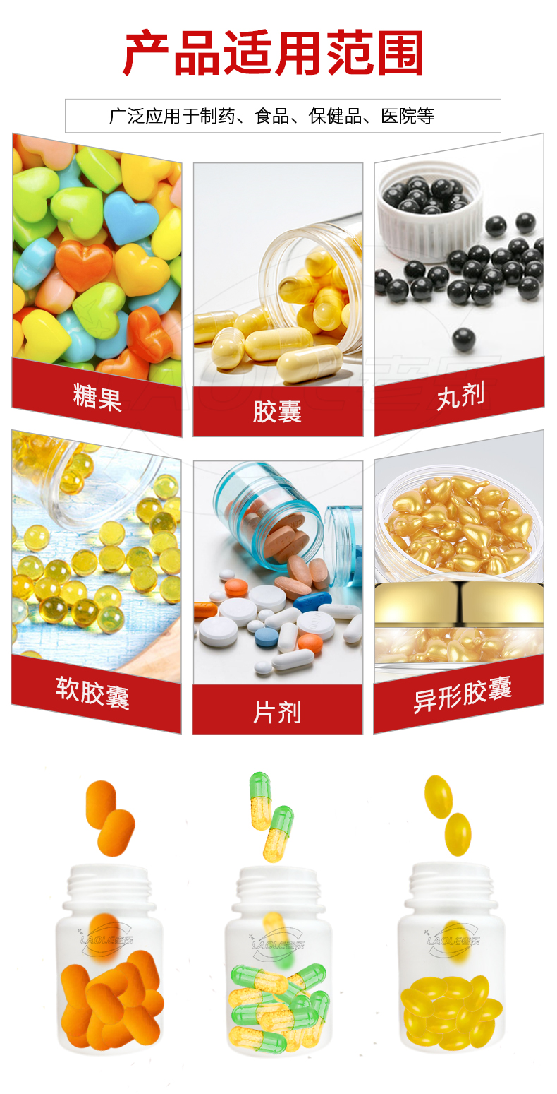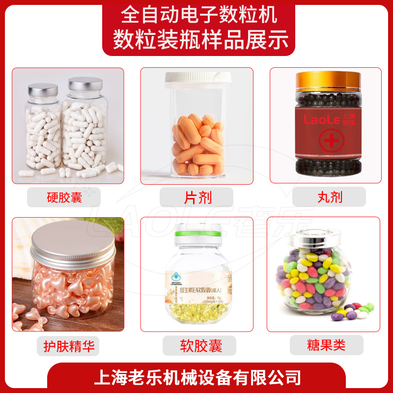 灌装对像:00~5#胶囊、软胶囊、Φ5.5~20素片、异形片、糖衣片,Φ3~20丸剂