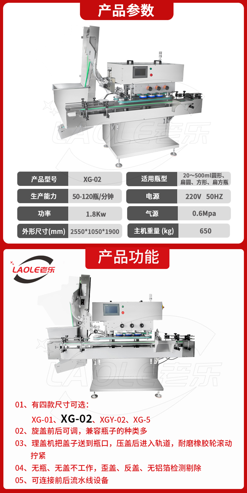 适用瓶型:20~500ml圆形、扁圆、方形、扁方瓶